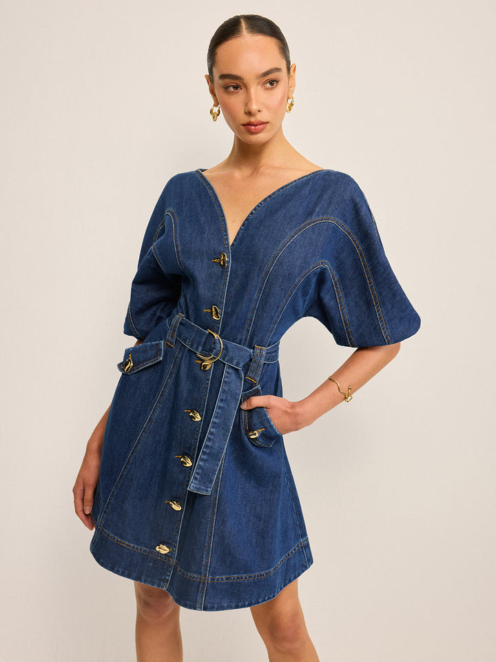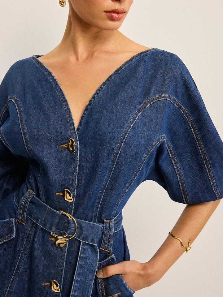 Cepli Kemerli Kot Elbise