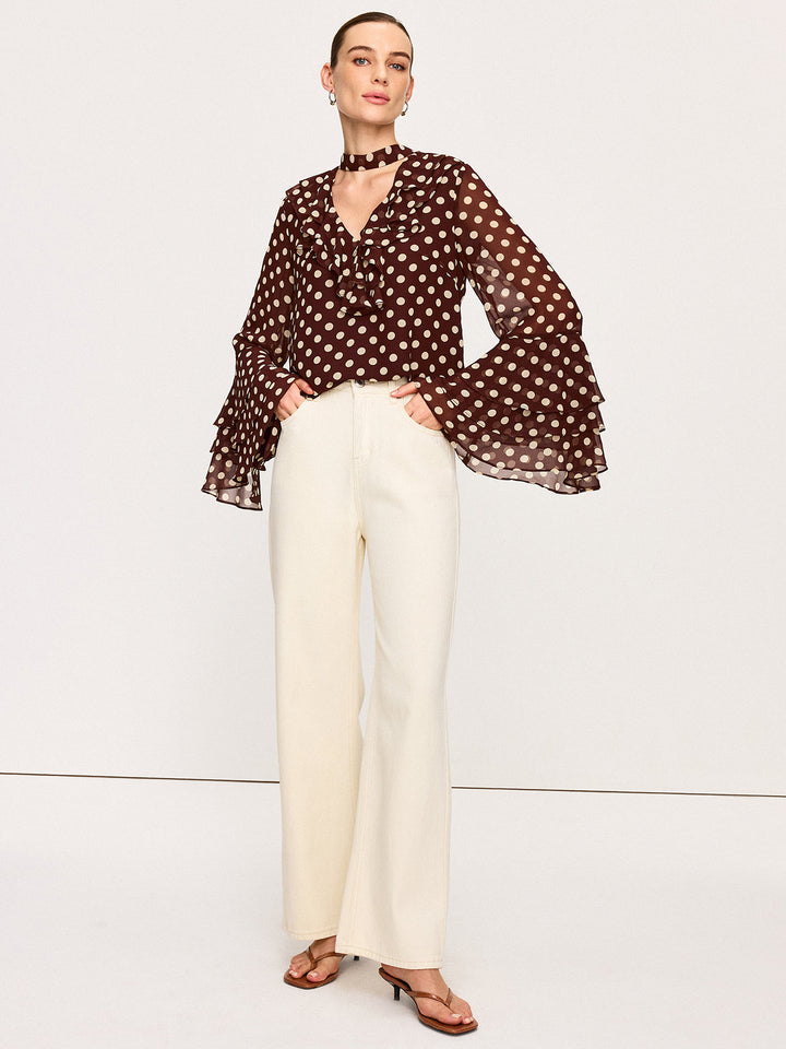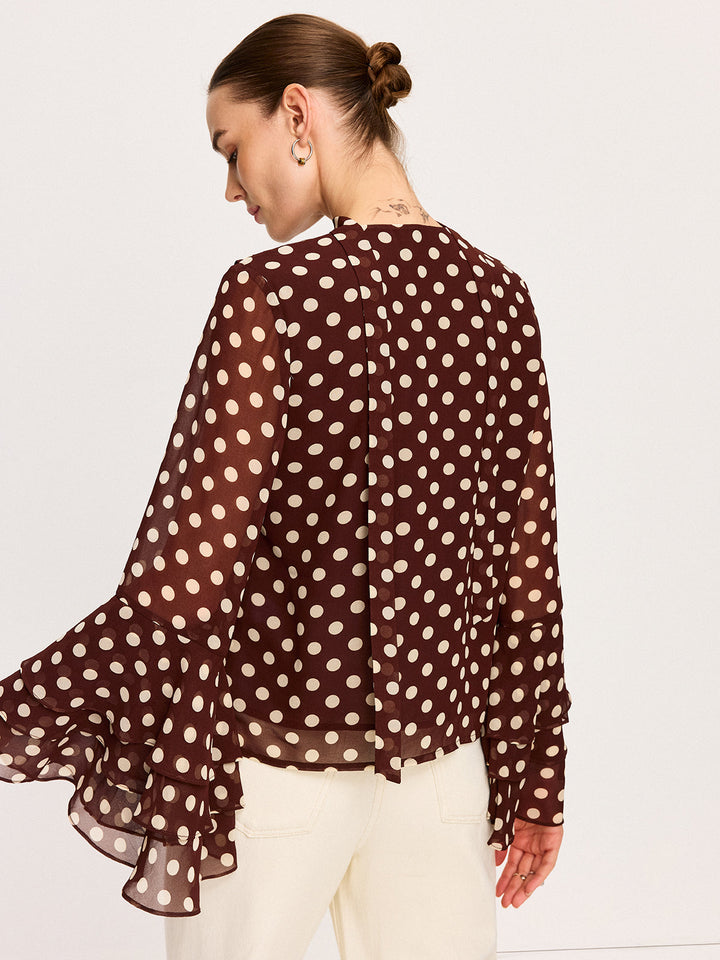 Yarı Şeffaf Puantiyeli Çan Kollu Şifon Bluz