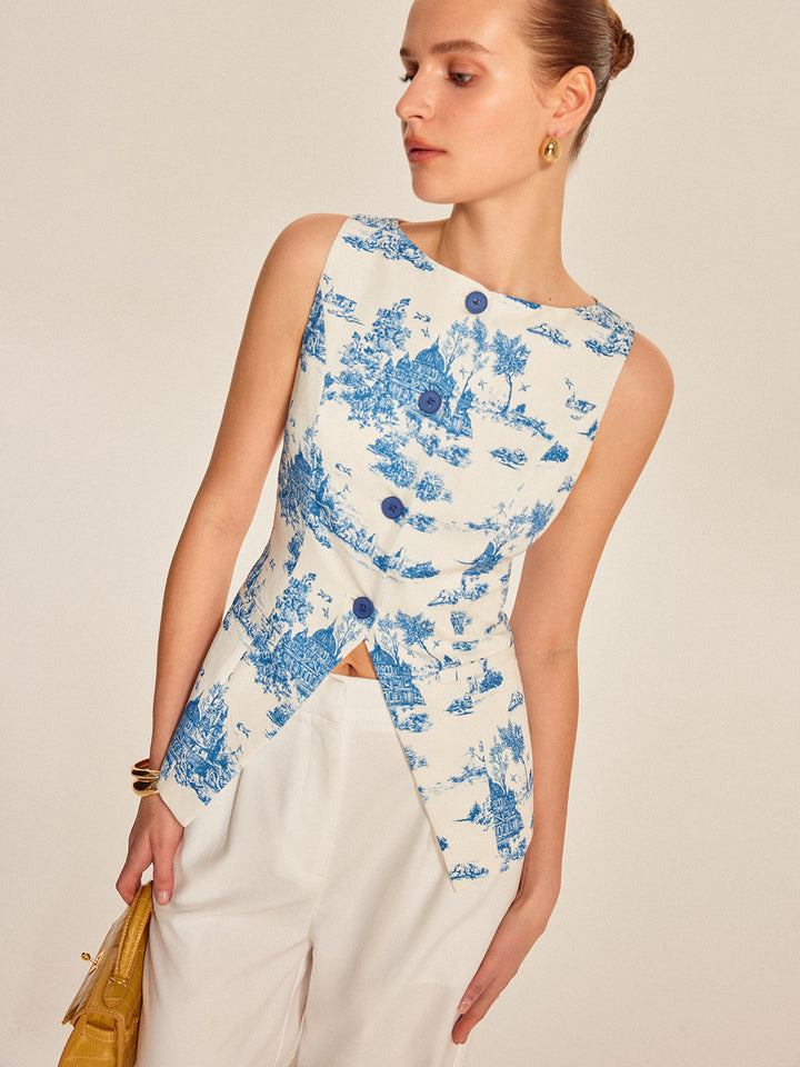 Baskılı Kolsuz Yırtık Etekli Yelek