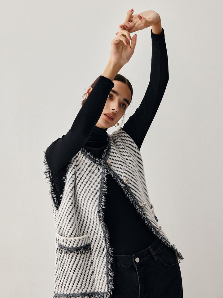 Ham Etek Çift Cepli Örgü Yelek