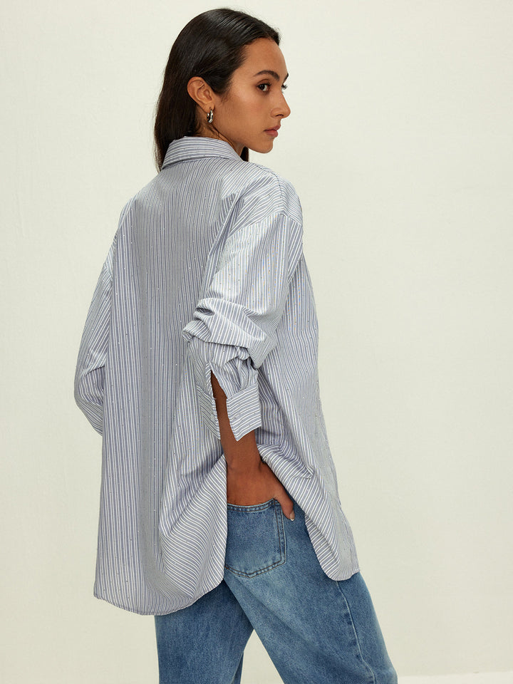 Yapay Elmas Noktalı Çizgili Cepli Gömlek