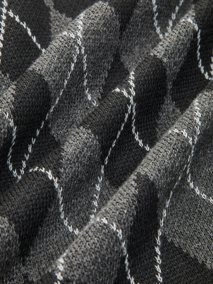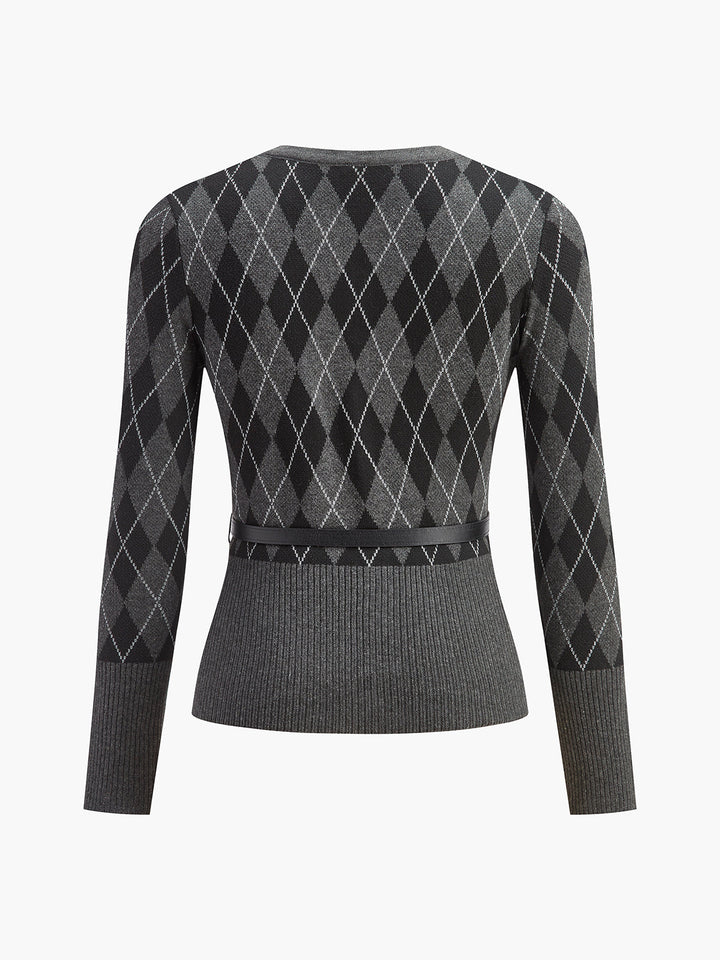 Eşkenar Dörtgen Desenli Kemerli Düğmeli Hırka
