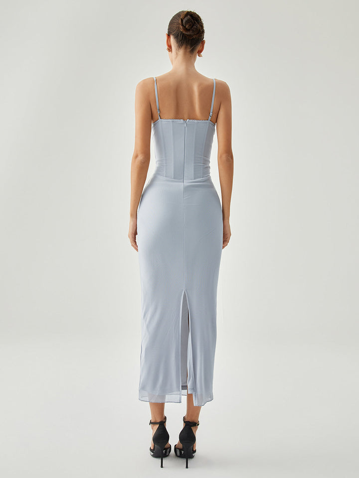 Ribanalı Drapeli Yırtmaçlı Dosya Tankı Uzun Elbise