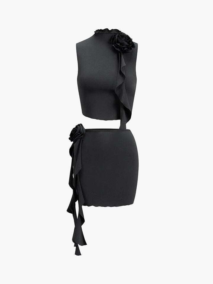 Rozet Volanlı İki Parça Etek Takımı