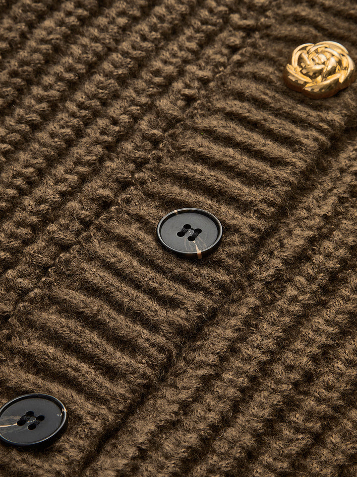 Yuvarlak Yaka Metal Detaylı Kısa Hırka