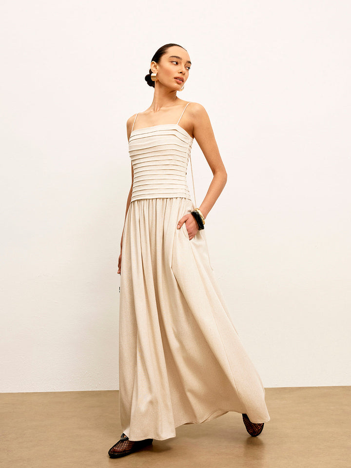 Büzgülü Sırtı Bağlamalı Askılı Elbise
