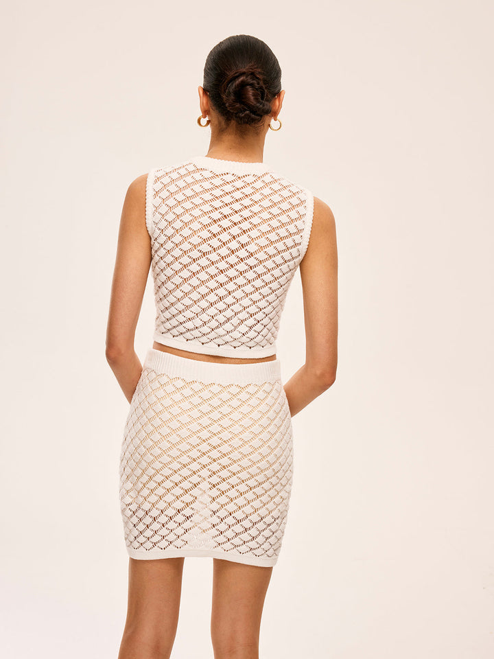 Yarı Şeffaf Düğme Detaylı Örme Etek Takımı
