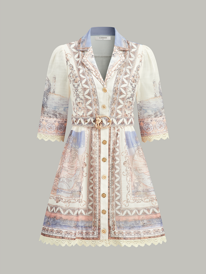 Kemerli Yarı Şeffaf Düğmeli Elbise