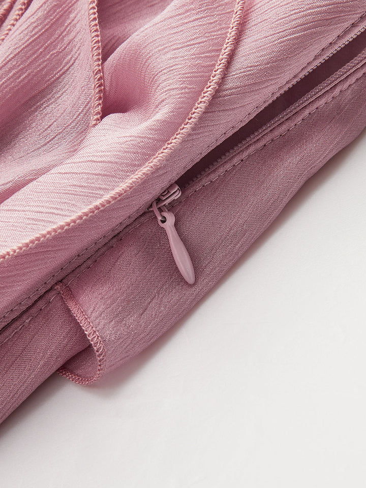 3D Rozet Desenli Yarı Şeffaf Şifon Drapeli Etek