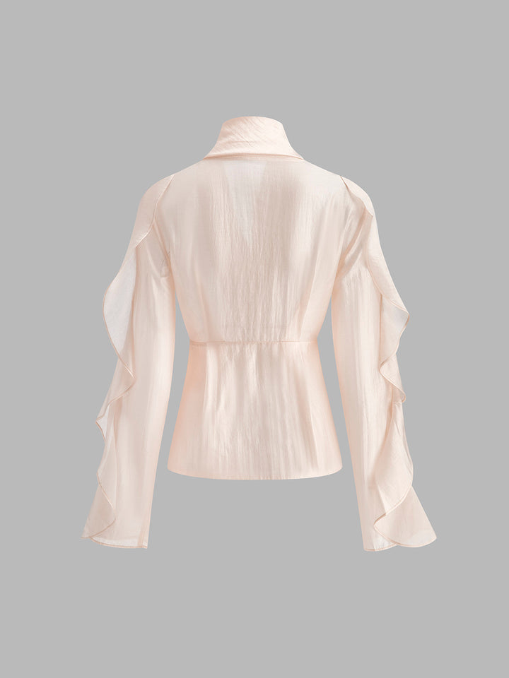Yarı Şeffaf Şifon V Yakalı Büzgülü Bluz