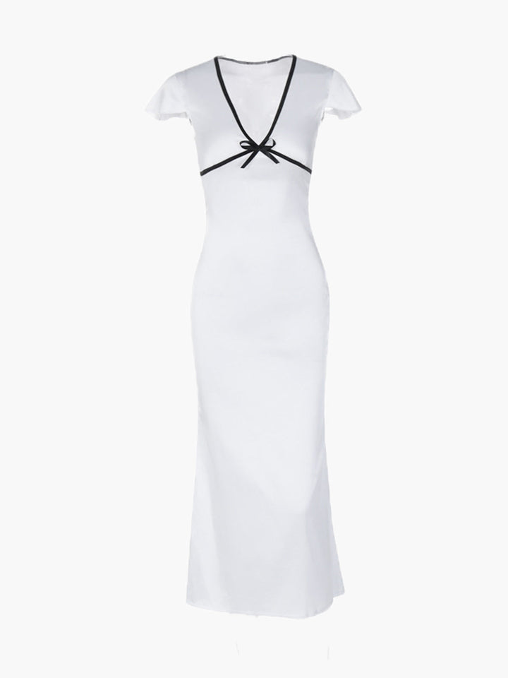 Yarı Şeffaf Kontrast Kesim Midi Elbise