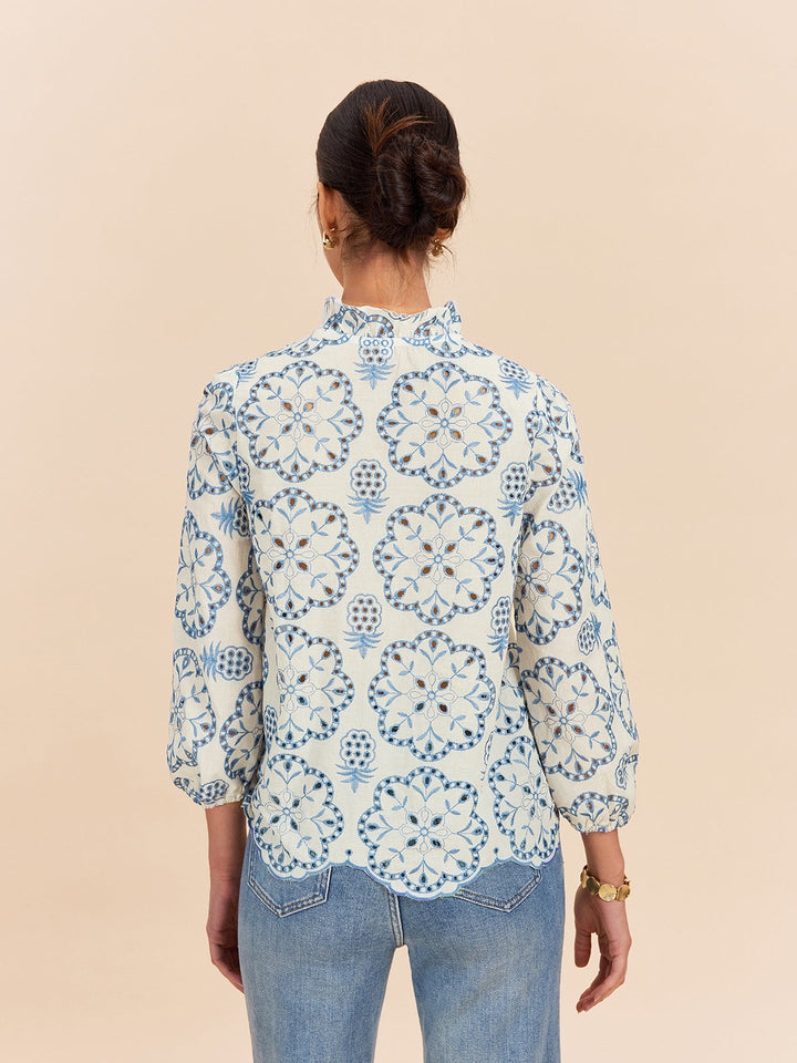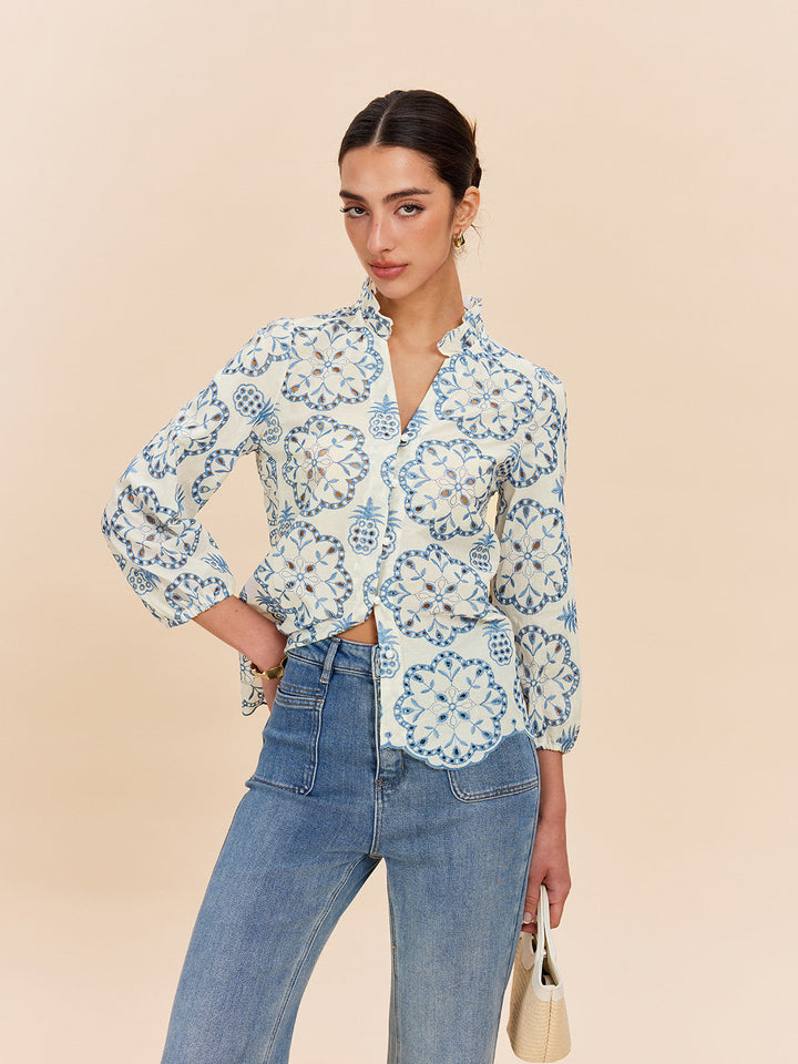 Yarı Şeffaf İşlemeli Düğmeli Gömlek