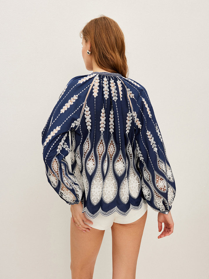Yarı Şeffaf İşlemeli Kravat Yaka Bluz