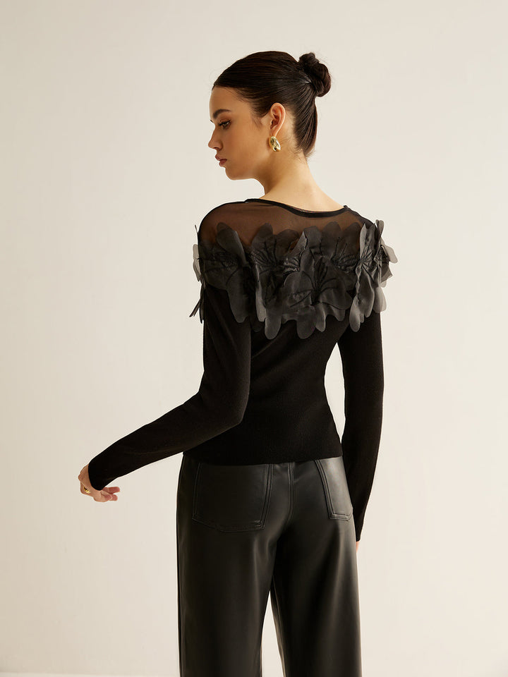 Yarı Şeffaf Çiçek Desenli İnce Bluz