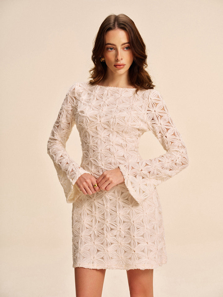 Yarı Şeffaf Çiçekli Dantel Uzun Kollu Elbise