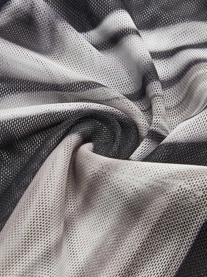 Yarı Şeffaf Geometrik Baskılı Dosya Jersey Üst