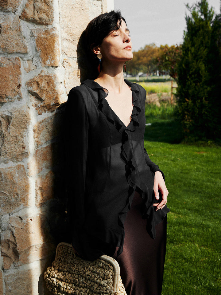 Yarı Şeffaf Volanlı İnce Bluz