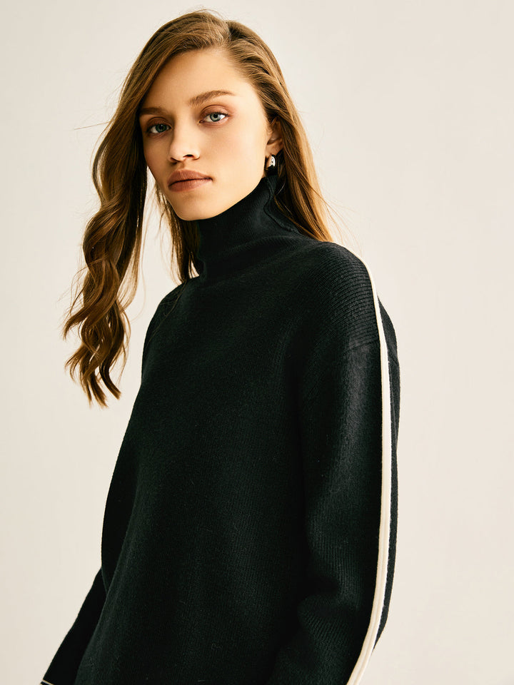 Yanları Kontrast Çizgili Balıkçı Yaka Kazak