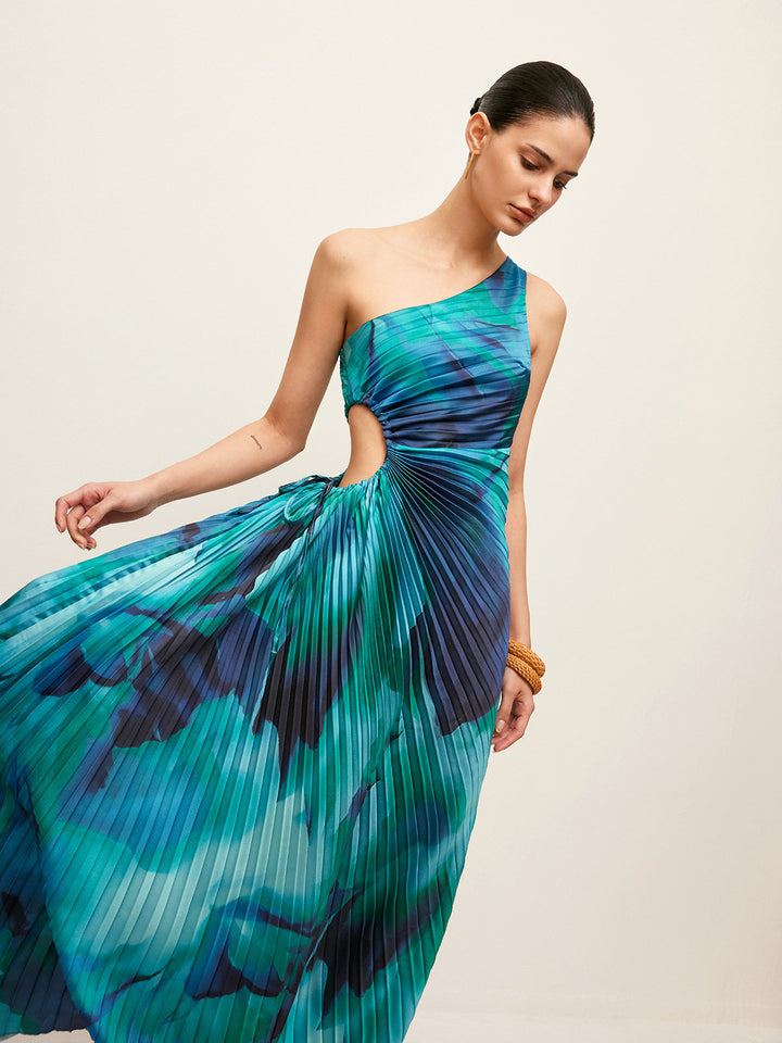 Yandan Kesikli Tek Omuzlu Pileli Elbise