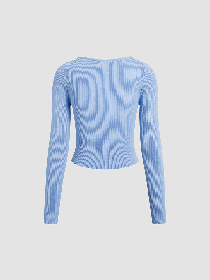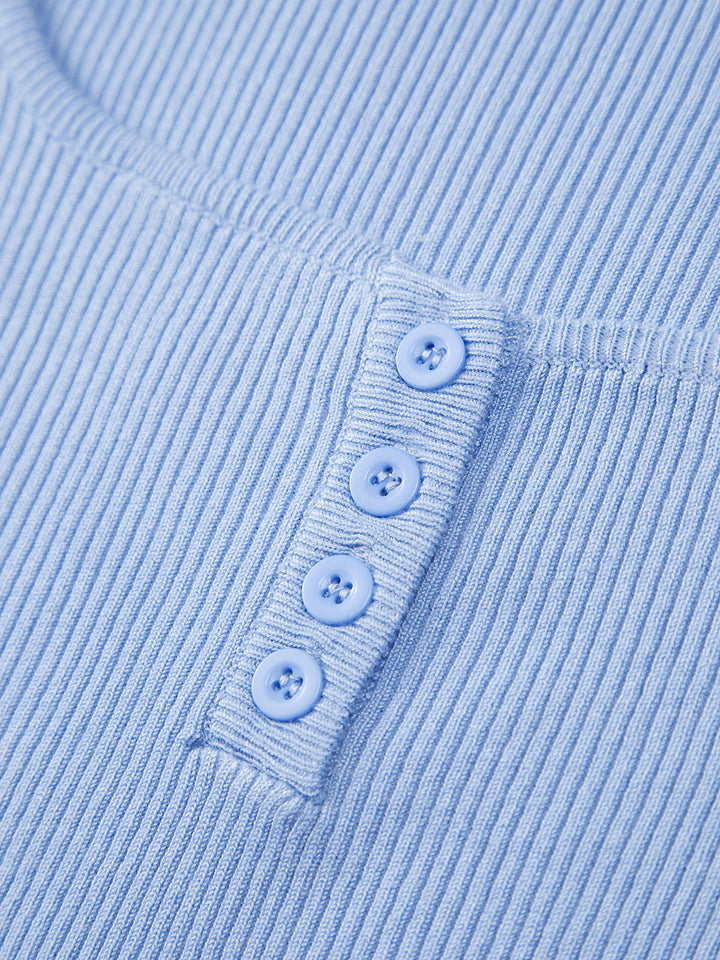 Sessiz Deniz Düğmeli Kaburga Örgü Üst