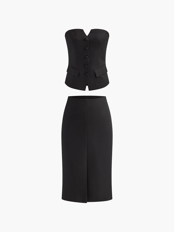 Düz Omuz Açık Etek Takımı