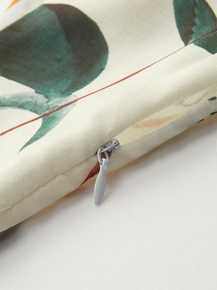 Kare Yaka Çiçek Desenli Fermuarlı Elbise