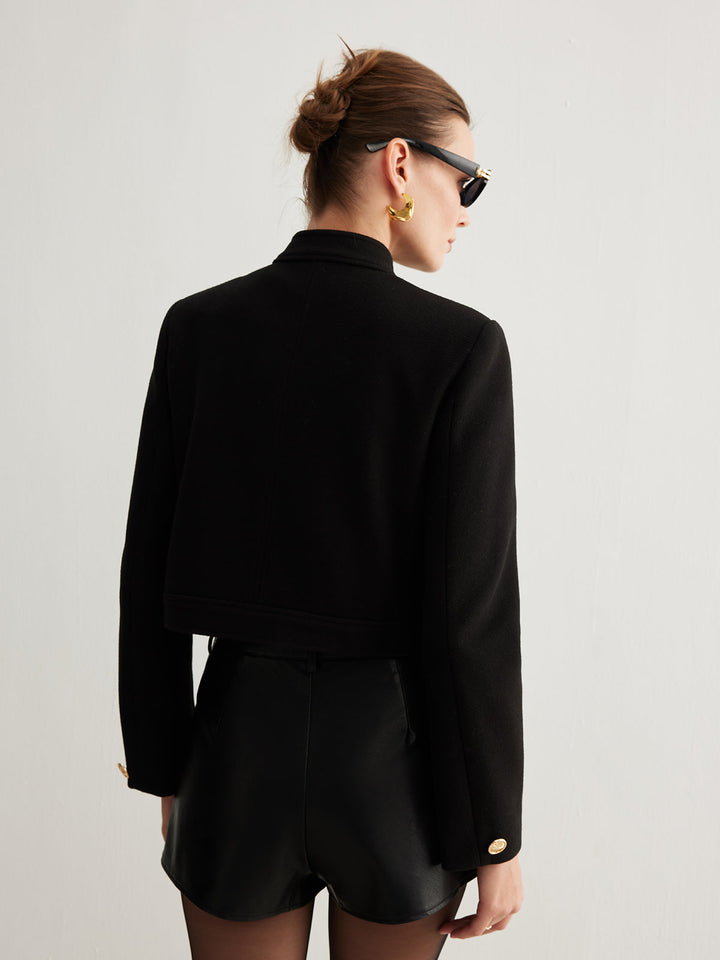 Dik Yaka Düğmeli Tüvit Kısa Ceket