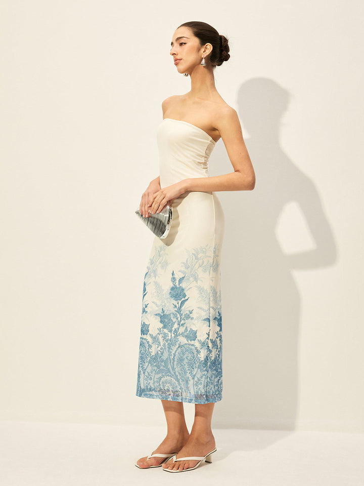 Çiçek Desenli Etek Ucu Askısız Dosya Elbise