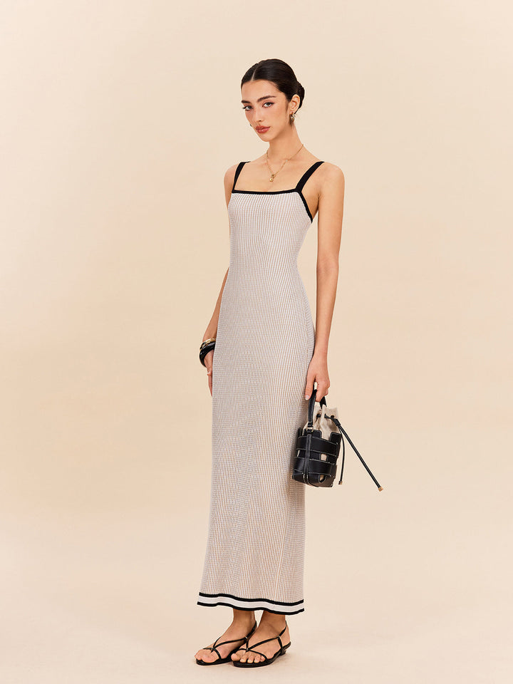 Çizgili Kontrast Kesim İnce Askılı Kazak Elbise