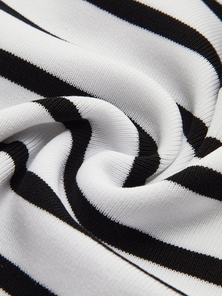 Çizgili Kısa Vücuda Oturan Örgü Üst
