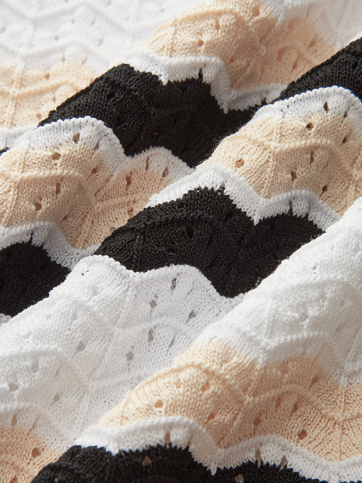 Çizgili Etek Ucu Askısız Örgü Üst