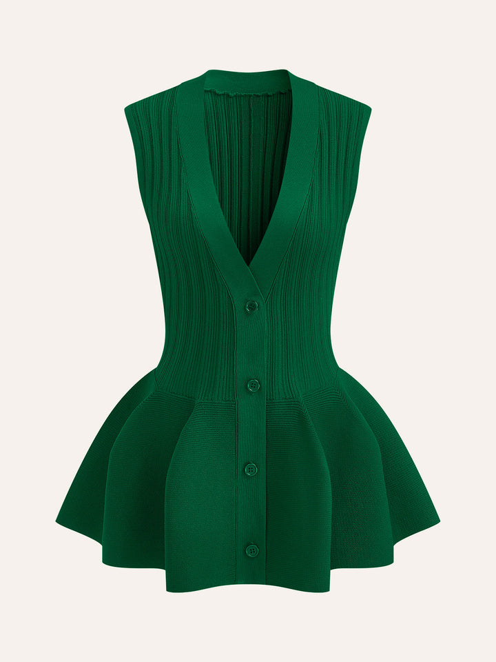 Yapılandırılmış Peplum Düğmeli Örgü Yelek