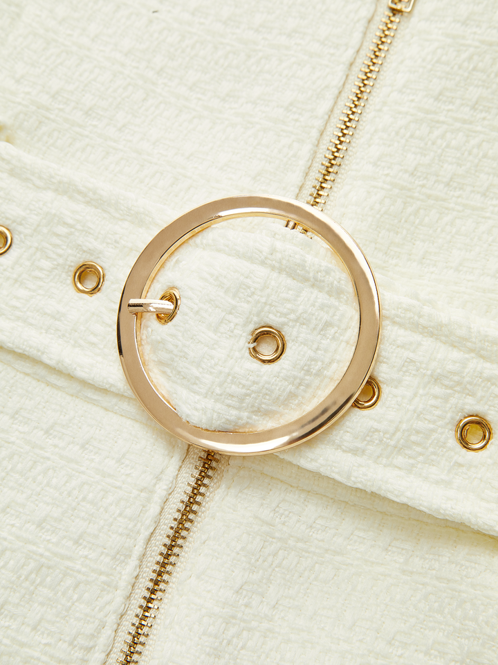Kemerli Dokulu Fermuarlı Tulum