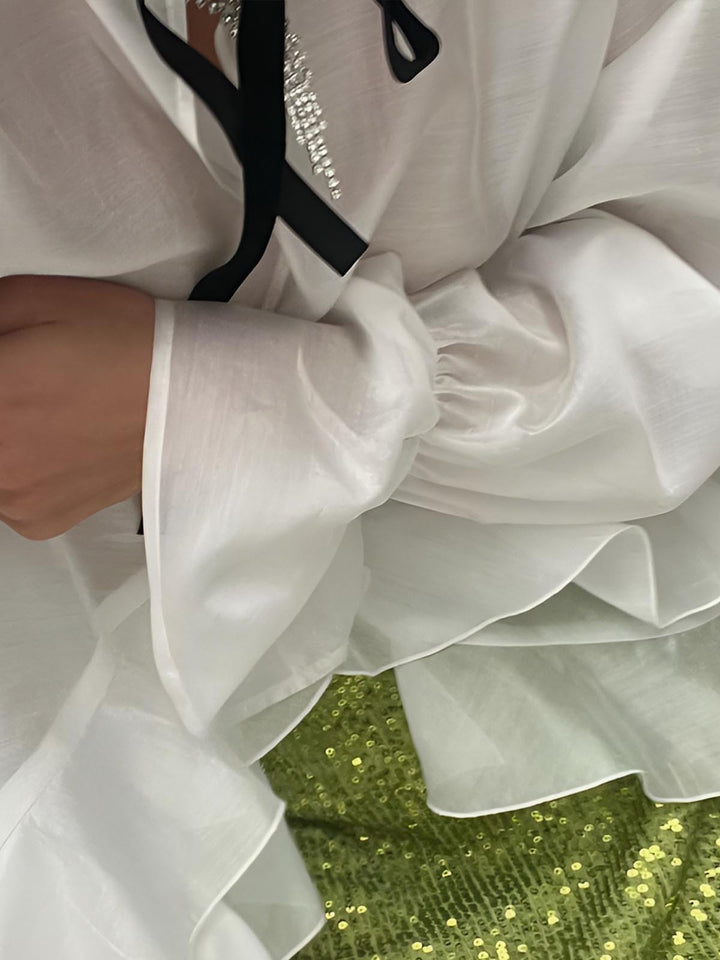 Yarı Şeffaf Kravat Yakalı Volanlı Gömlek