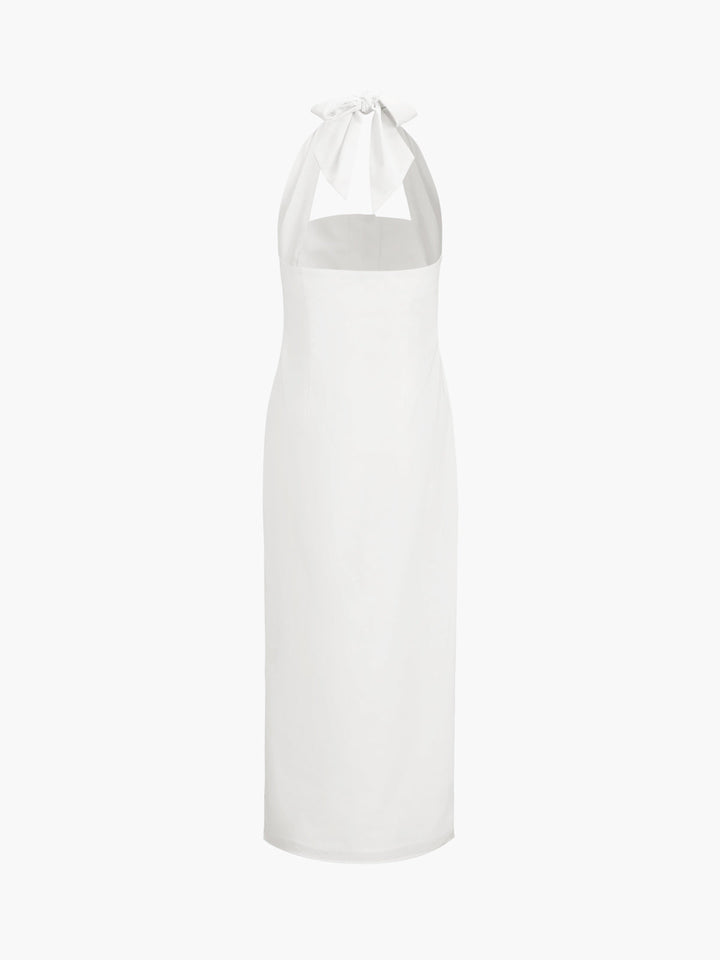 Bağcıklı Askılı Açık Sırtlı Pamuklu Keten Midi Elbise