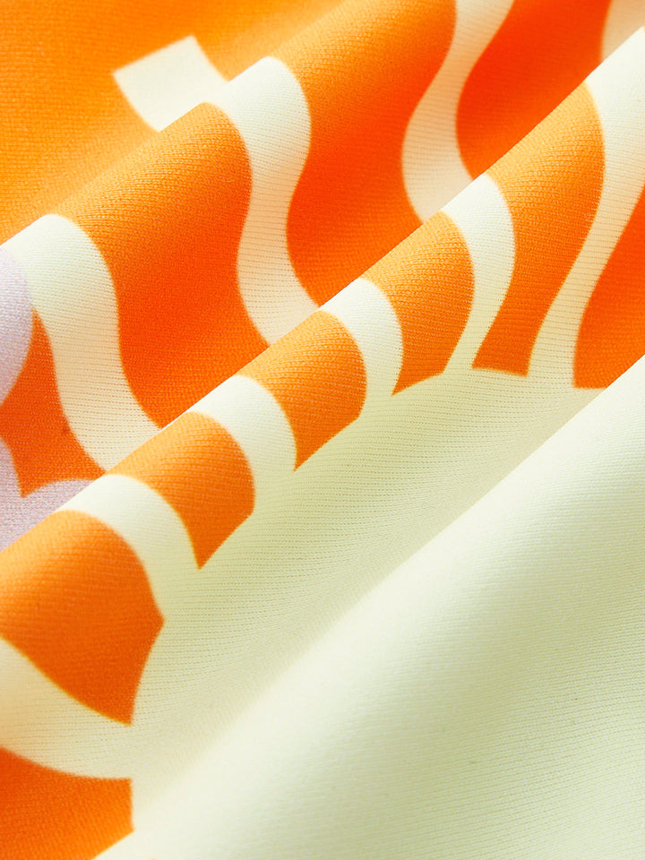 Tropikal Desenli Sırt Kesimli Tek Parça Mayo