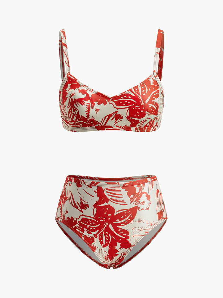 Tropikal Desenli Metal Tokalı Bikini Takımı