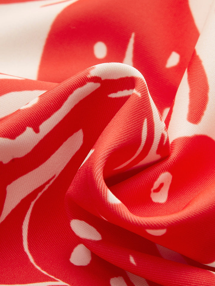 Tropikal Baskılı V Yaka Tek Parça Mayo