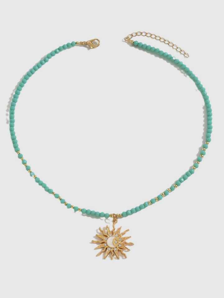 Turkuaz Boncuklu Gerdanlık Ve Güneş-Ay Kolye Ucu