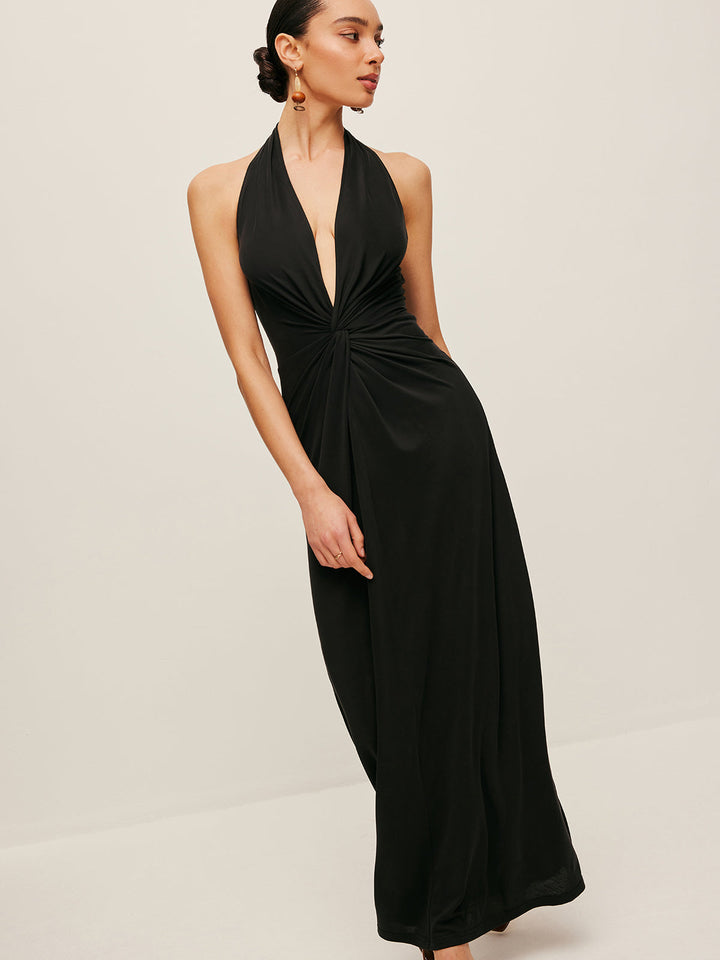 V Yakalı Önü Bükülmüş Askılı Elbise