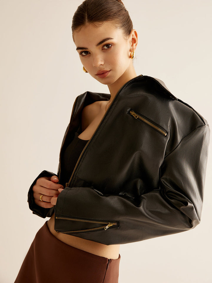 Çok Yönlü Kırpılmış Suni Deri Ceket