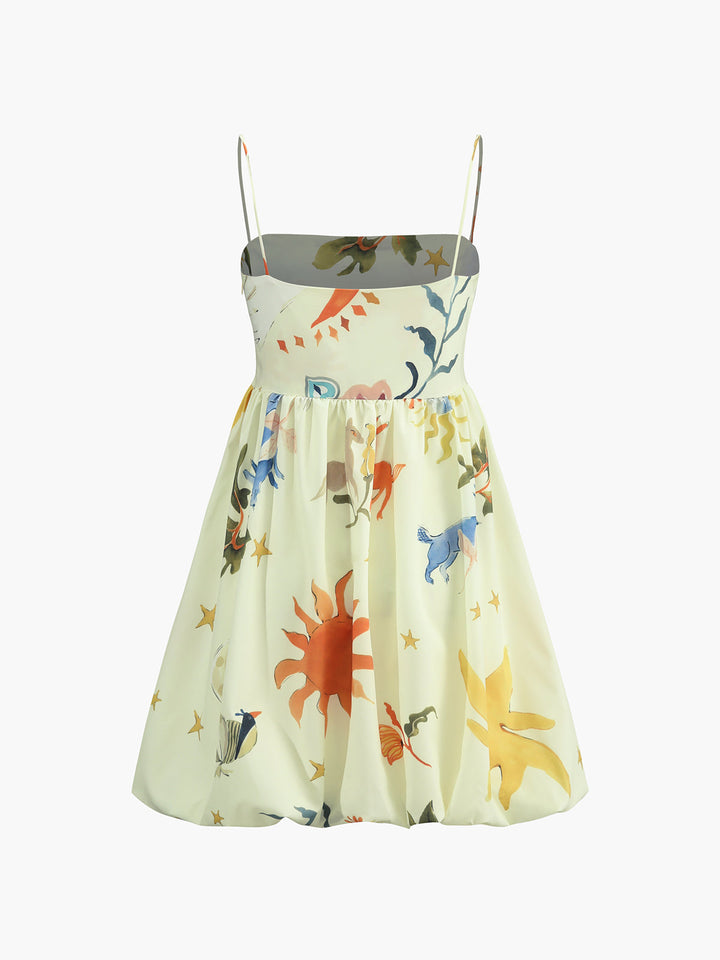 Vintage Baskılı Balon Elbise