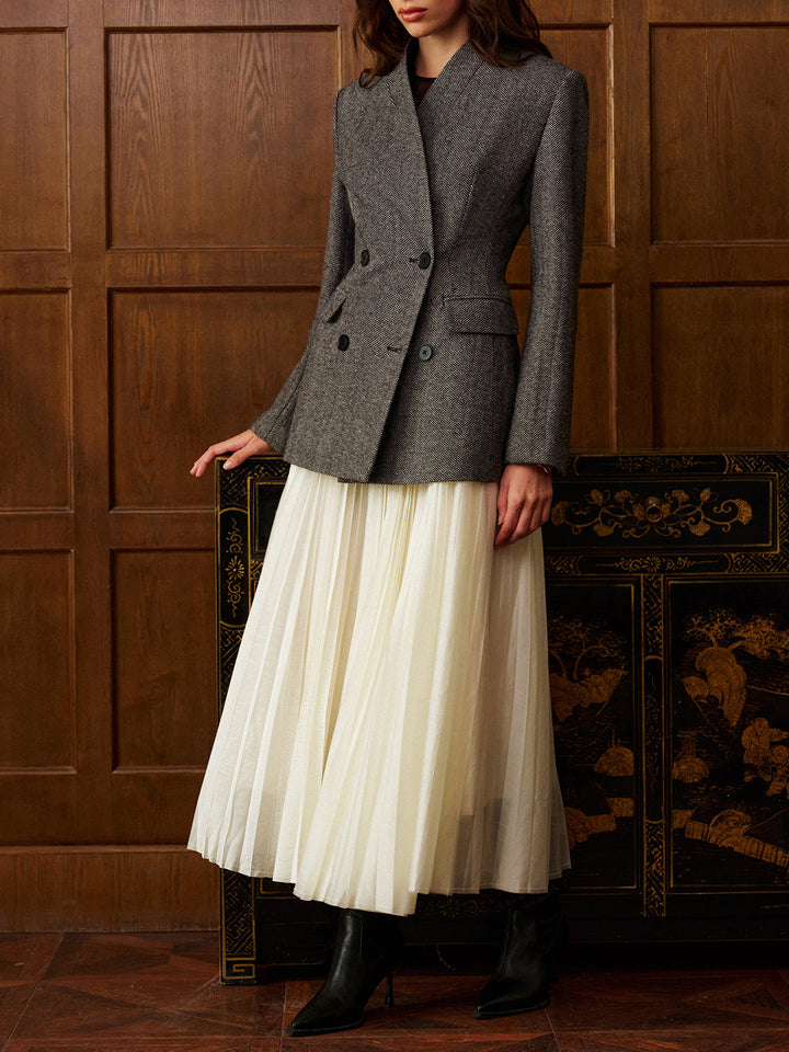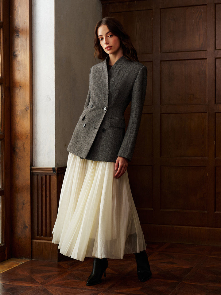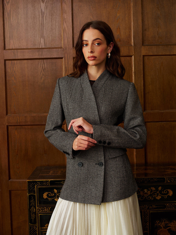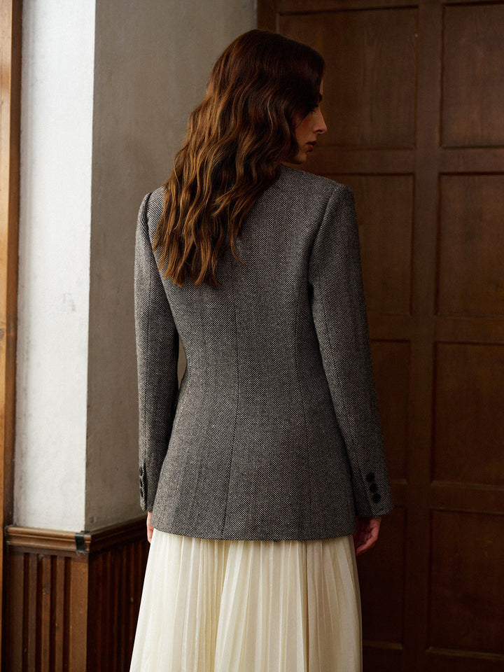 Yün Karışımlı Puantiyeli Slim Blazer
