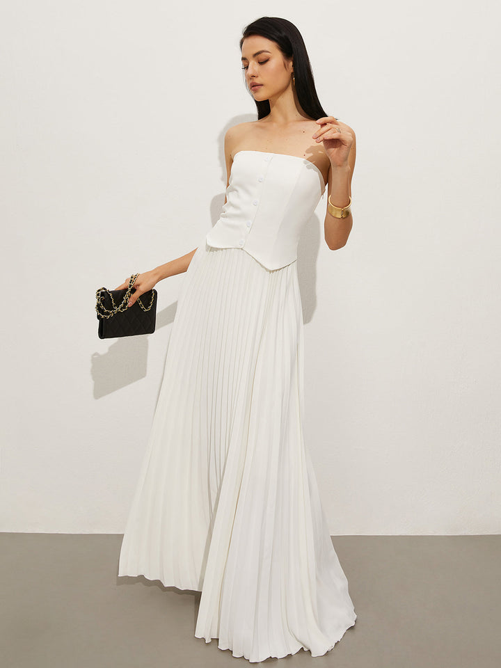 Omuzları Açık Pileli Elbise